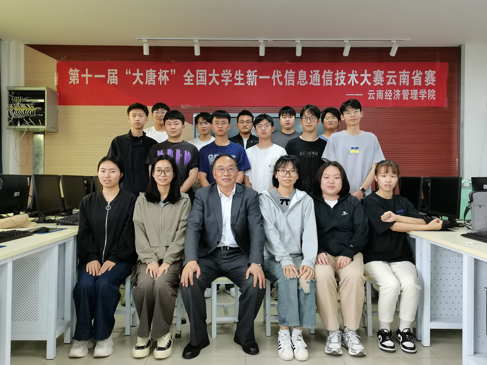 - 5月9日,由工业和信息化部人才交流中心和中国通信企业协会共同举办的第十一届“大唐杯”全国大学生新一代信息通信技术大赛正式公布省赛获奖名单,云南经济管理学院榜上有名!共有3支队伍6名学生荣获第十一届“大唐杯”全国大学生新一代信息通信技术大赛云南省赛本科组一等奖;7支队伍14名学生荣获云南省赛本科组二等奖;3支队伍6名学生荣获云南省赛本科组三等奖。图1 参加第十一届“大唐杯”全国大学生新一代信息通信技术大赛的学生在云南省赛现场为了能在比赛中获奖,指导老师彭家和教授积极准备,提前布局谋划,